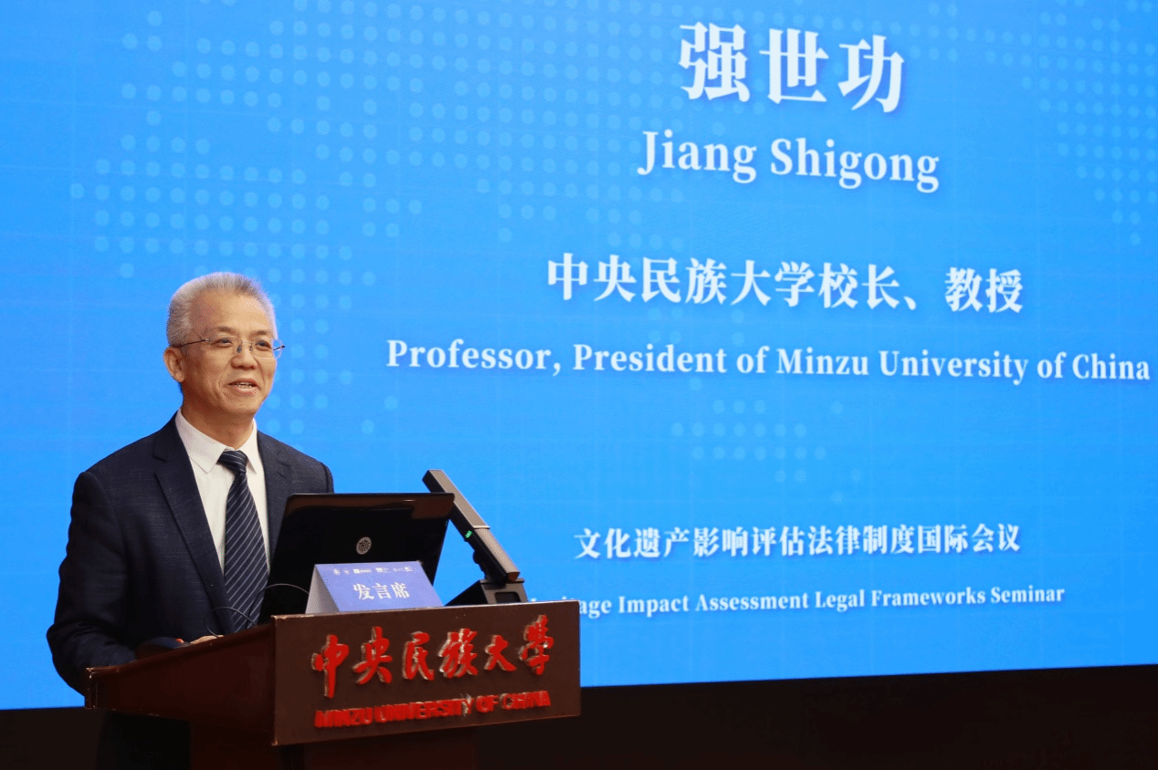校黨委副書記、校長強世功出席開幕式并致辭。他追溯了文化遺產的歷史脈絡,指出東亞地區與人類文明之間的密切關聯,強調本次會議對東亞地區文化遺產保護的重要性,并著重介紹了中央民族大學在文化遺產保護領域的學科優勢、學術積淀及項目成果。他指出,中央民族大學長期以來致力于研究中華民族的歷史和文化,文化遺產的保護不是封閉課題,而是開放的共同責任。要堅持通過搭建跨國界、跨學科的合作平臺,強化法律評估意識,為文化遺產領域法律保護的跨國協作機制提供實踐路徑。