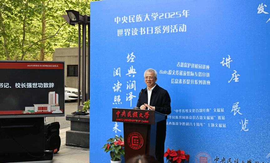 新聞網訊 為進一步深化全民閱讀活動,培育讀書新風尚,助力文化強國建設,4月23日,在第30個“世界讀書日”之際,校圖書館舉辦中央民族大學2025年世界讀書日“經典潤澤心靈 閱讀照亮未來”系列活動啟動儀式。校黨委副書記、校長強世功,校黨委常委、副校長王雄軍出席啟動儀式,紫竹院街道黨工委書記吳紅蓉,學校相關部門負責人,以及研究生會、學生會、獲獎師生代表參加活動。
