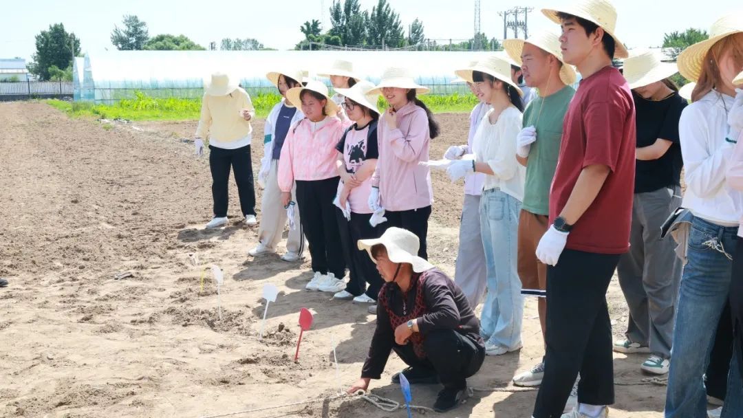 同學們懷著對農耕文化的好奇與向往,投入了獨具特色的“耕讀課堂”。在田間地頭,大家手持農具,在專業人員的指導下學習翻地技巧,掌握起壟要領,認真聆聽施肥方法和播種要點。通過親身體驗農事勞作,深刻體會農耕的艱辛與糧食的來之不易。在農具體驗環節,從玉米脫粒、石磨碾粉,到現代膨化技術展示,同學們既驚嘆于傳統農具的巧思,又感受到農耕文明的智慧傳承;講解老師帶領大家系統認識各類作物,將理論知識與田間實踐生動結合,通過對比傳統與現代加工方式的差異,讓同學們直觀感受到農業技術的進步,完成了一場跨越古今的農業文化探索之旅。