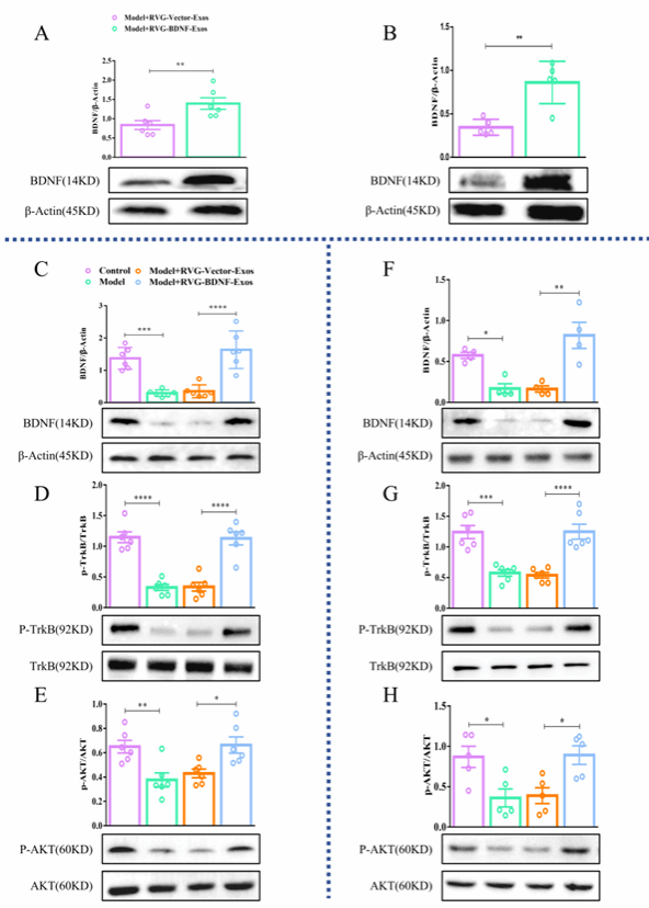 程勇教授課題組通過基因工程技術開發出一種能夠高效遞送BDNF基因的靶向外泌體。具體來說,他們將神經元特異性的狂犬病毒糖蛋白(RVG)和BDNF基因結合,并導入到293T細胞中。這些細胞隨后生產出含有BDNF基因的工程化外泌體(RVG-BDNF-Exos),能夠特異性地靶向神經元。