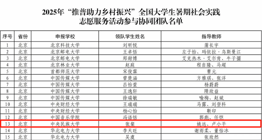 入選的五支隊(duì)伍將依托專業(yè)特色優(yōu)勢,緊扣鄉(xiāng)村發(fā)展實(shí)際,下沉基層一線,精心組織開展主題鮮明、亮點(diǎn)紛呈的推普行動(dòng),把理論知識(shí)轉(zhuǎn)化為實(shí)踐動(dòng)能,引領(lǐng)鄉(xiāng)村群眾學(xué)普、說普、愛普,以民大學(xué)子的實(shí)干精神,為全面建設(shè)社會(huì)主義現(xiàn)代化國家、全面推進(jìn)中華民族偉大復(fù)興凝聚青春智慧與力量。