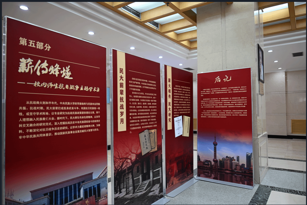 作為學(xué)校“我從延安來”黨建文化月的項(xiàng)目之一,展覽以珍貴史料為載體,生動(dòng)展現(xiàn)全民族抗戰(zhàn)的壯烈史詩,激勵(lì)師生賡續(xù)紅色血脈,鑄牢中華民族共同體意識(shí)。本展長期面向全校師生開放。作為一堂生動(dòng)的“大思政課”,它既是對先烈英魂的深切緬懷,更是對中國共產(chǎn)黨領(lǐng)導(dǎo)下中華民族共同體意識(shí)的時(shí)代禮贊。在邁向偉大復(fù)興的新征程中,中央民族大學(xué)將繼續(xù)以紅色文化培根鑄魂,譜寫民族團(tuán)結(jié)與時(shí)代奮進(jìn)的新篇章。