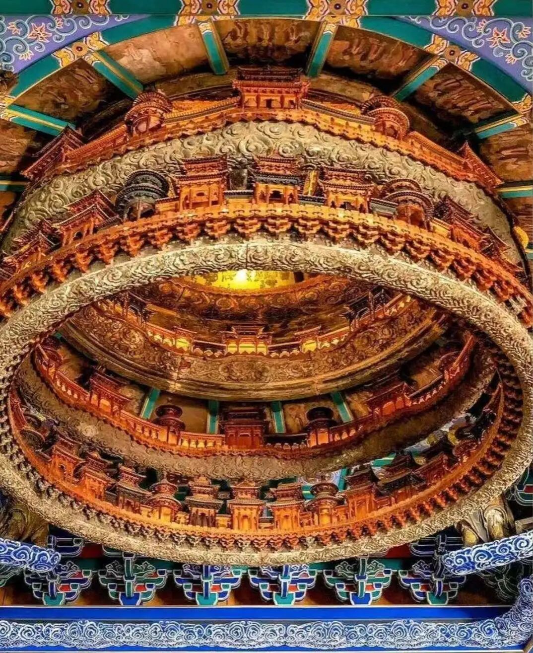這是一座震撼心靈的建筑奇觀,明代“天宮藻井”(現(xiàn)藏北京古代建筑博物館),被譽(yù)為“中國最美藻井”。