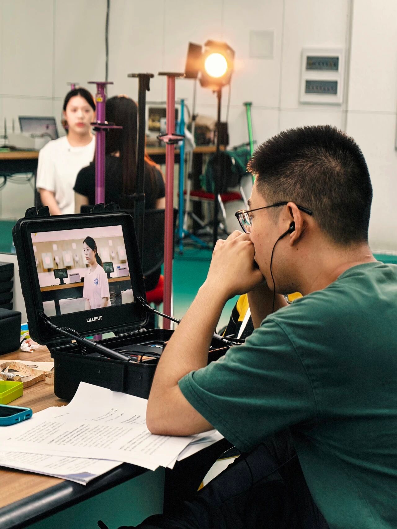 “李老師經常帶我們在光明日報、北京日報、學校、學院等單位拍攝。還記得拍攝2024年學校軍訓紀錄片時,老師擔心我們心理壓力過大,經常來豐臺校區看望我們,不僅帶了鎮暑解渴的冰飲,還現場指導。他會將創作實踐反哺教學,督促學生的學術研究和實踐創作,培養我們的創新思維、實踐能力與社會責任感?!?023級戲劇與影視專業碩士楊子如這樣說。