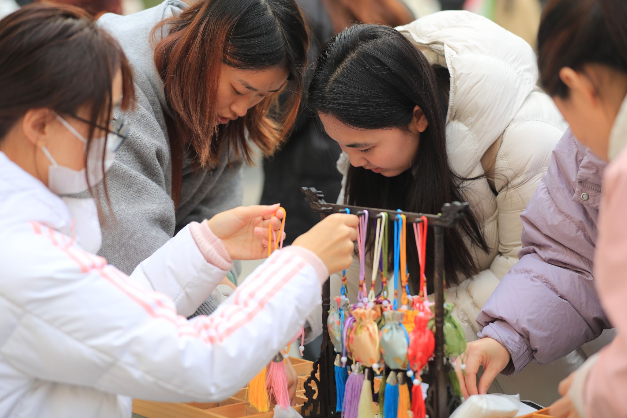 “MUC養(yǎng)生市集”內(nèi),學(xué)生們體驗(yàn)中藥香囊制作。