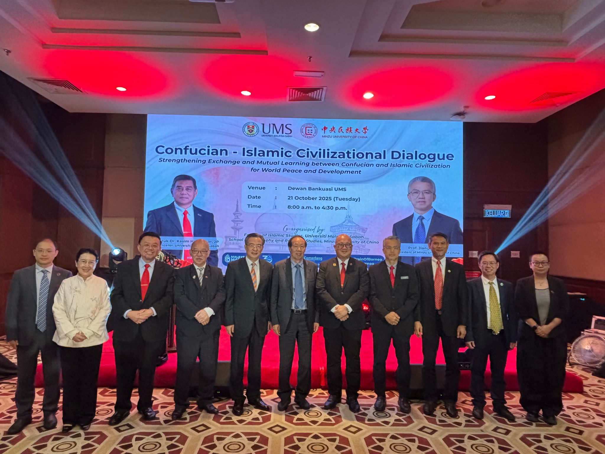 新聞網訊 10月21日,由中央民族大學、馬來西亞沙巴大學及中國駐哥打基納巴盧總領館共同主辦的“儒伊文明對話會”在馬來西亞沙巴大學舉行。中國駐哥打基納巴盧總領事朱興龍,中國文物保護基金會理事長劉玉珠,沙巴大學常務副校長卡欣代表薩菲里,沙巴州旅游、文化及環境部長劉靜芝,沙巴州前首席部長楊德利等出席并致辭。中央民族大學黨委副書記、校長強世功通過視頻方式參會,并發表了題為《加強文明互鑒 以東方智慧共促和平發展》的主旨演講。